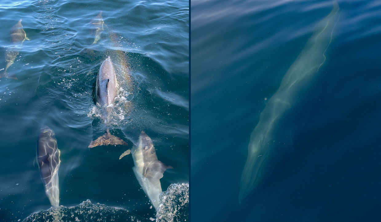 Nästa dag var en av mina favoriter. Vi gick upp 06:30 och åkte på valtur. Vi såg en mamma och en unge som simmade under båten – redan det var mäktigt.