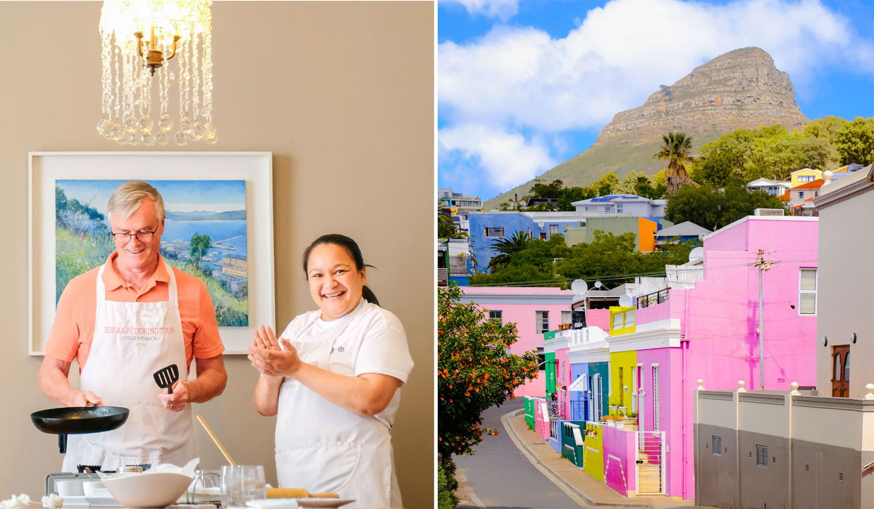 Nästa dag besökte vi Bo-Kaap, det färgglada kvarteret du förmodligen har sett på Instagram. Vi tog en kort rundvandring och lärde oss varför husen är så ljusa (snabbt fakta: traditionen att måla dem började när befriade slavar firade sin nya frihet genom att färglägga sina hem). Efter rundturen besökte vi en lokal familj som lärde oss att laga Cape Malay-mat.