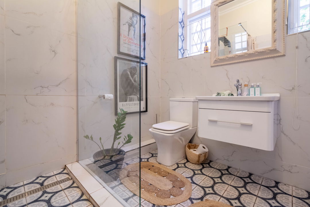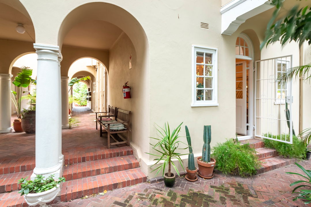 I ett kulturmärkt hus öppnar lägenheten upp mot en lummig innergård fylld av träd där ekorrar leker och fåglar sjunger – en sällsynt grön oas mitt i Kapstadens hjärta. Oavsett om du njuter av morgonkaffet under träden eller en stilla kväll inomhus, kommer du att känna dig både närvarande och omhändertagen.
