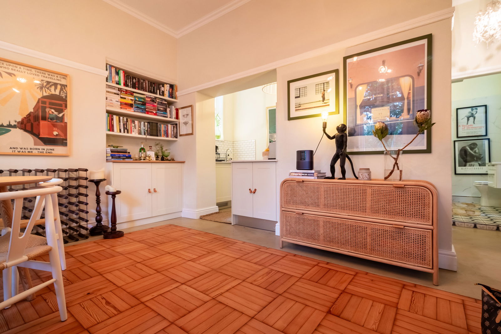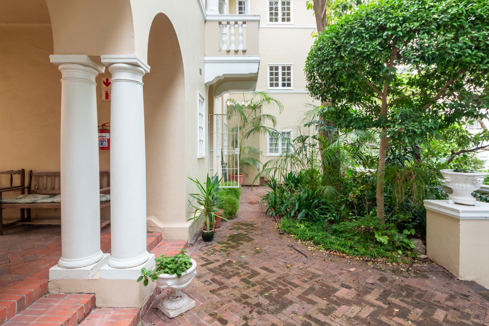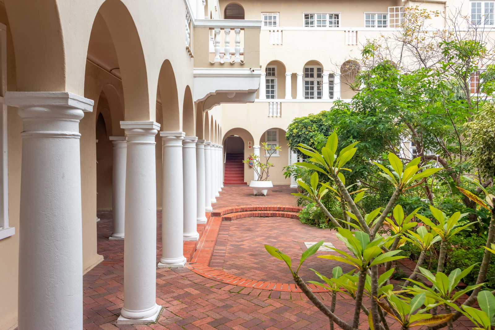 I ett kulturmärkt hus öppnar lägenheten upp mot en lummig innergård fylld av träd där ekorrar leker och fåglar sjunger – en sällsynt grön oas mitt i Kapstadens hjärta. Oavsett om du njuter av morgonkaffet under träden eller en stilla kväll inomhus, kommer du att känna dig både närvarande och omhändertagen.