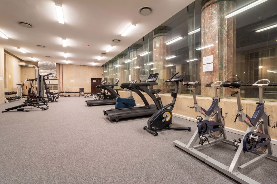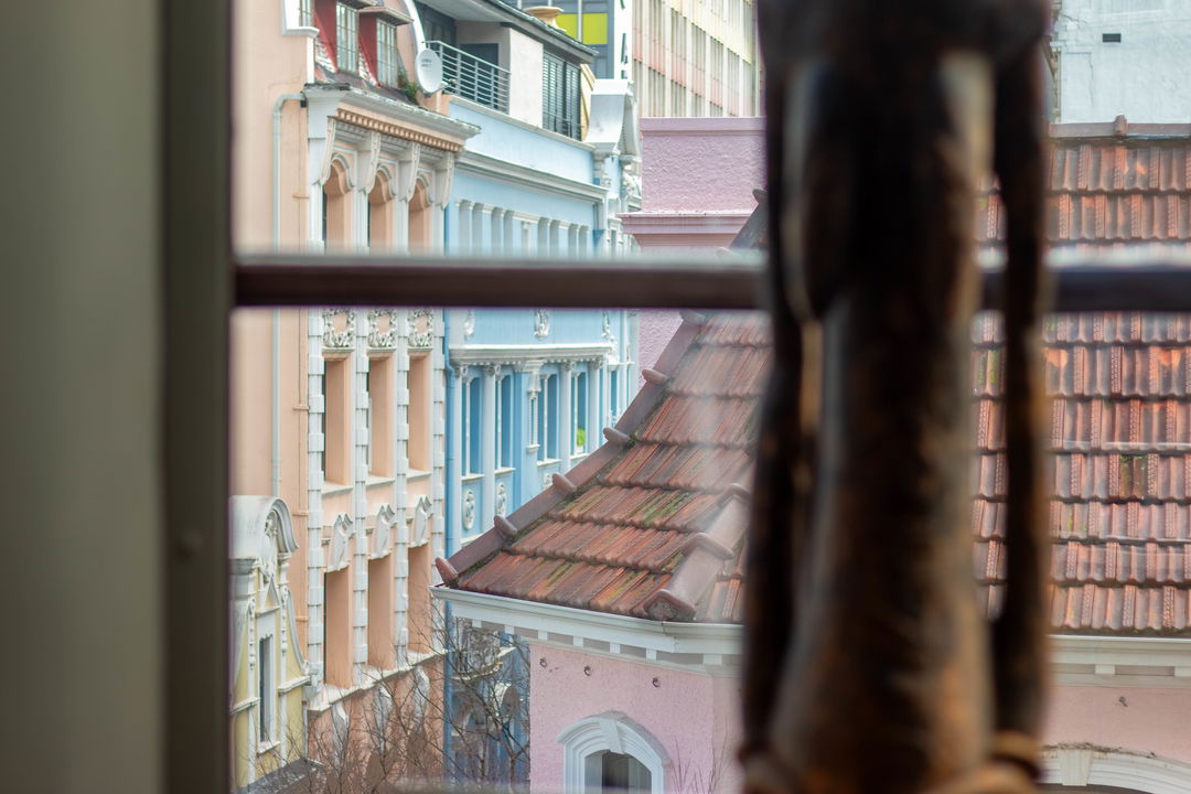 Den här säkra lägenheten har höga tak och fönster som erbjuder dig en fantastisk utsikt över staden. Köket har en bardisk med fyra barstolar och är fullt utrustad med en kyl med frys, vattenkokare, te, kaffe, socker och även tallrikar, bestick och kökstillbehör.