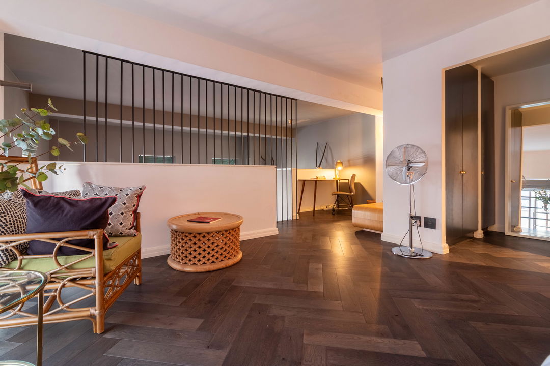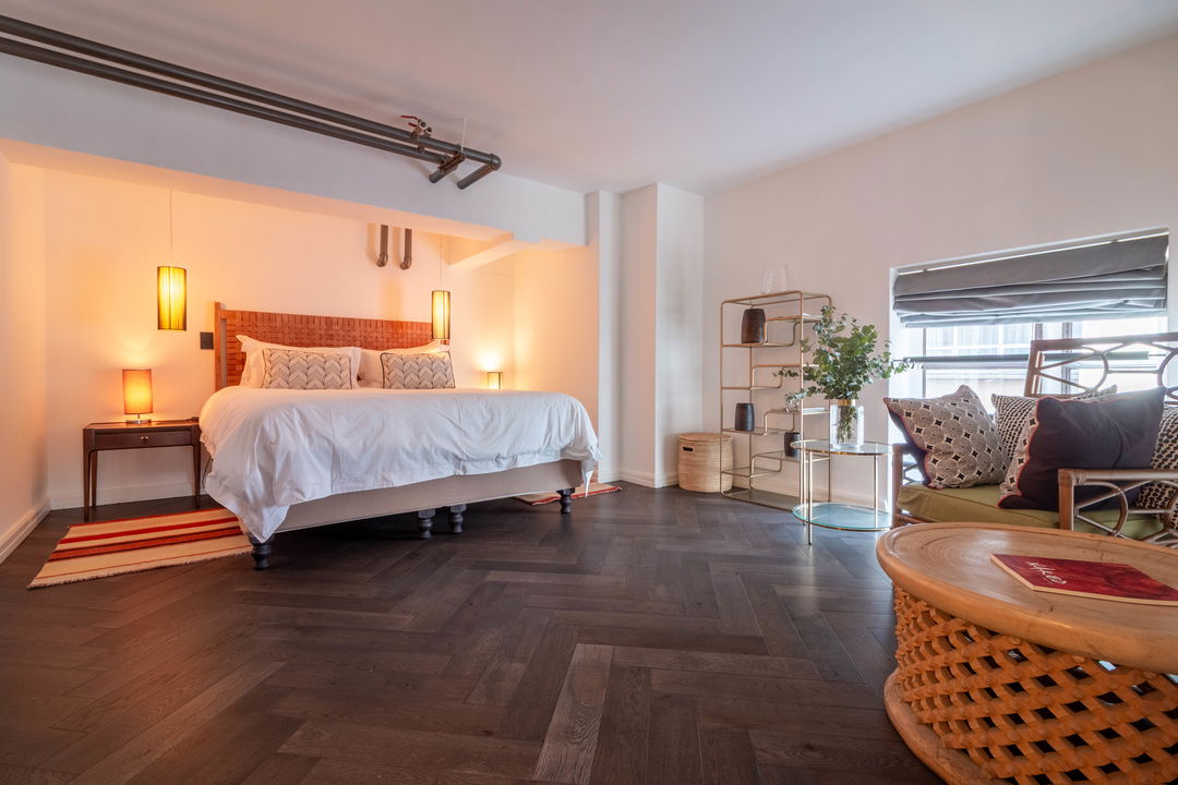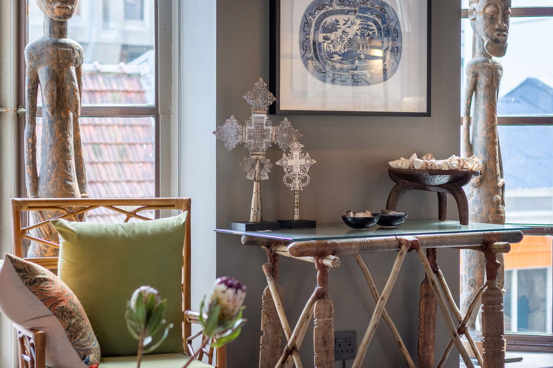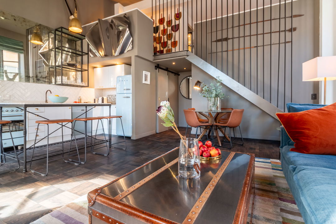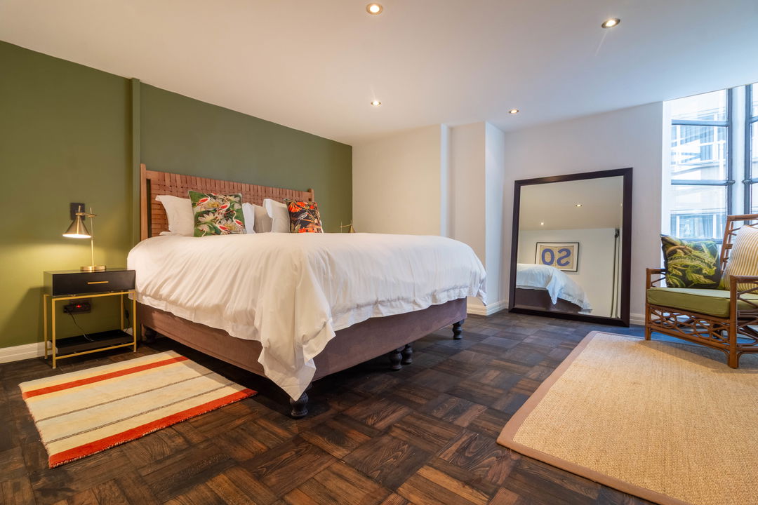 Det intilliggande vardagsrummet med parkettgolv skapar en varm och öppen yta och har ett matbord för fyra personer. Utöver det, så är det perfekt beläget med nära till nattlivet, restauranger, museum och en biltur iväg från CTICC, Artscape Theatre, Cape Town Stadium i Green Point och V&A Waterfront.